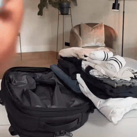 Our expandable travel backpack offers up to 40L of storage capacity. This is enough to fit up to 7 days' worth of clothing, along with your travel essentials like a laptop, toiletries, and more.